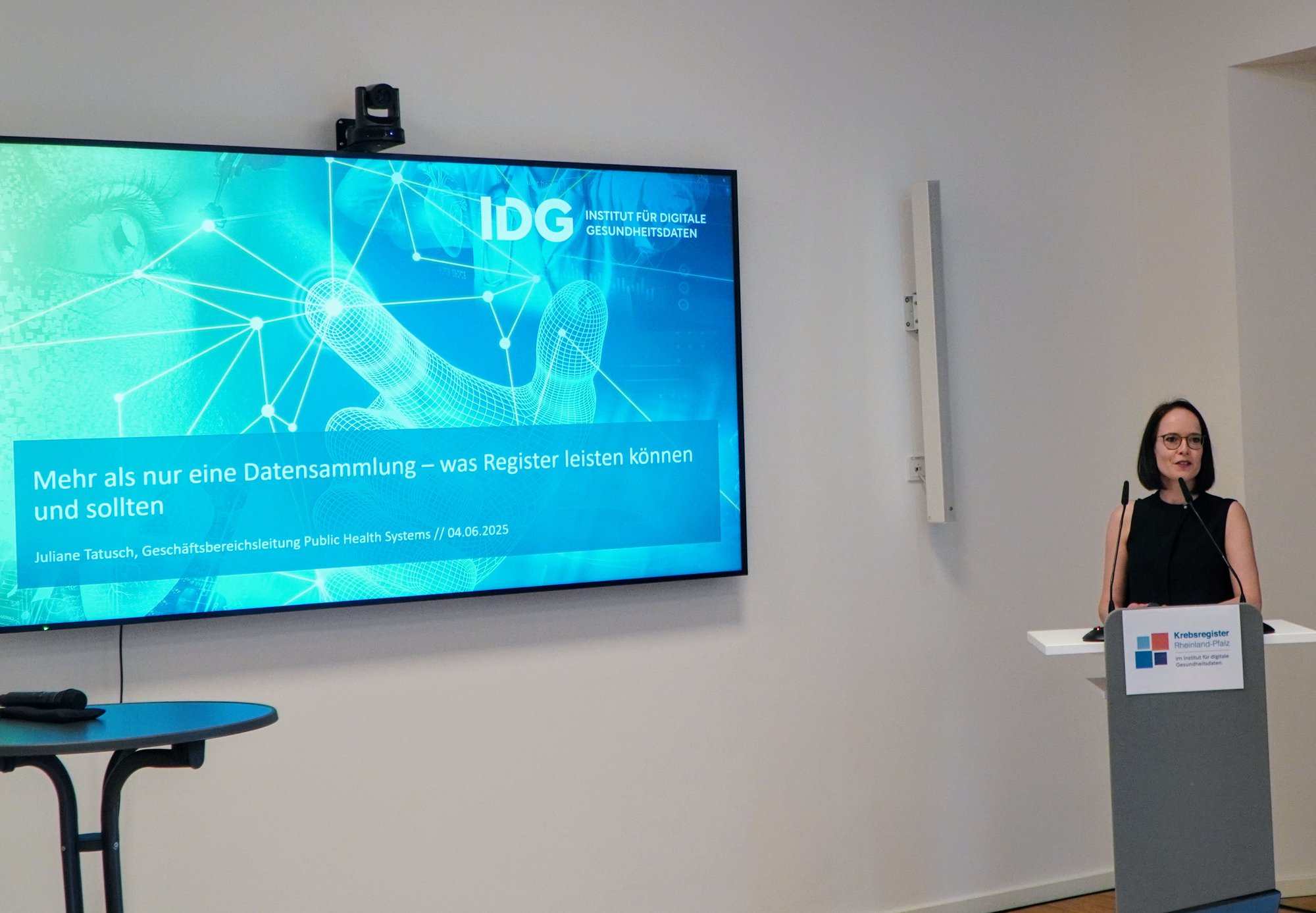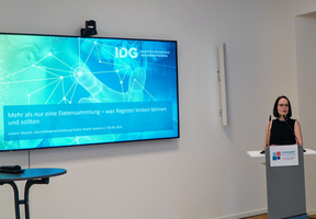 Juliane Tatusch (Leitung Geschäftsbereich Public Health Systems im IDG) stellte im Anschluss das Portfolio des IDG für den Aufbau und Betrieb von medizinischen Registern im IDG vor – ein zentraler Bestandteil strukturierter Qualitätssicherung.